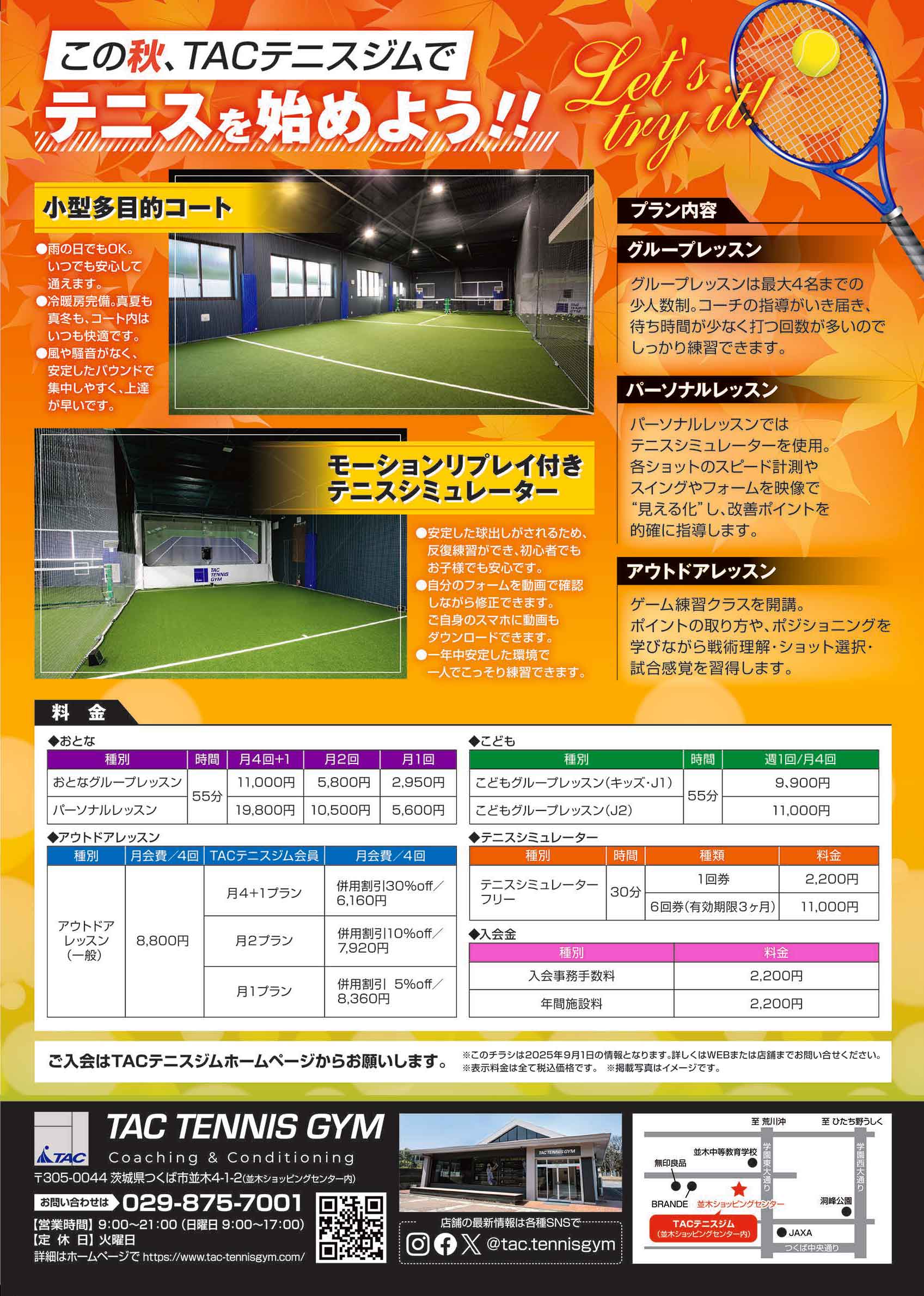 この秋、TACテニスジムでテニスを始めよう‼
